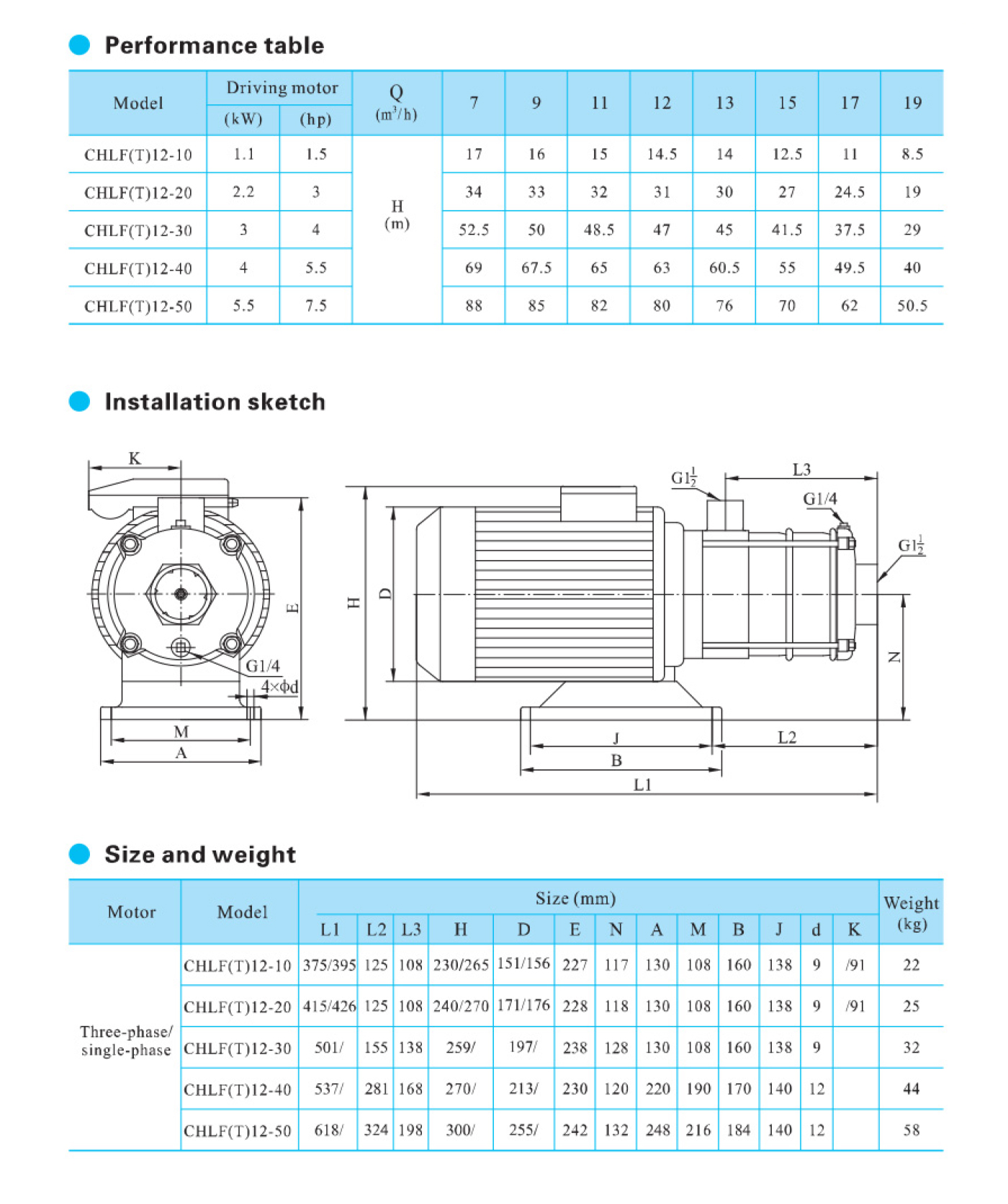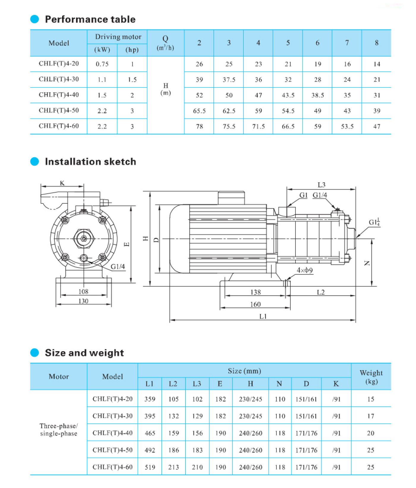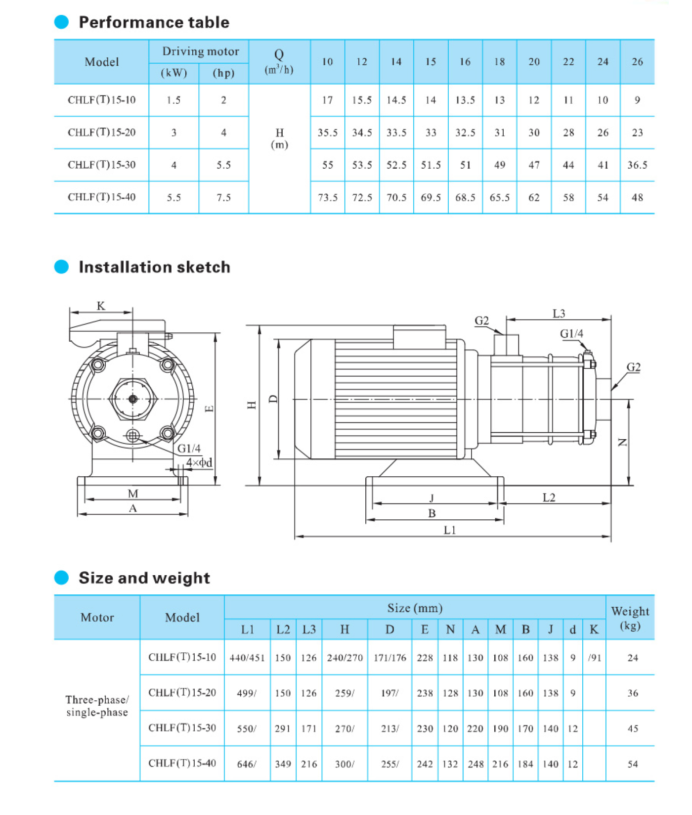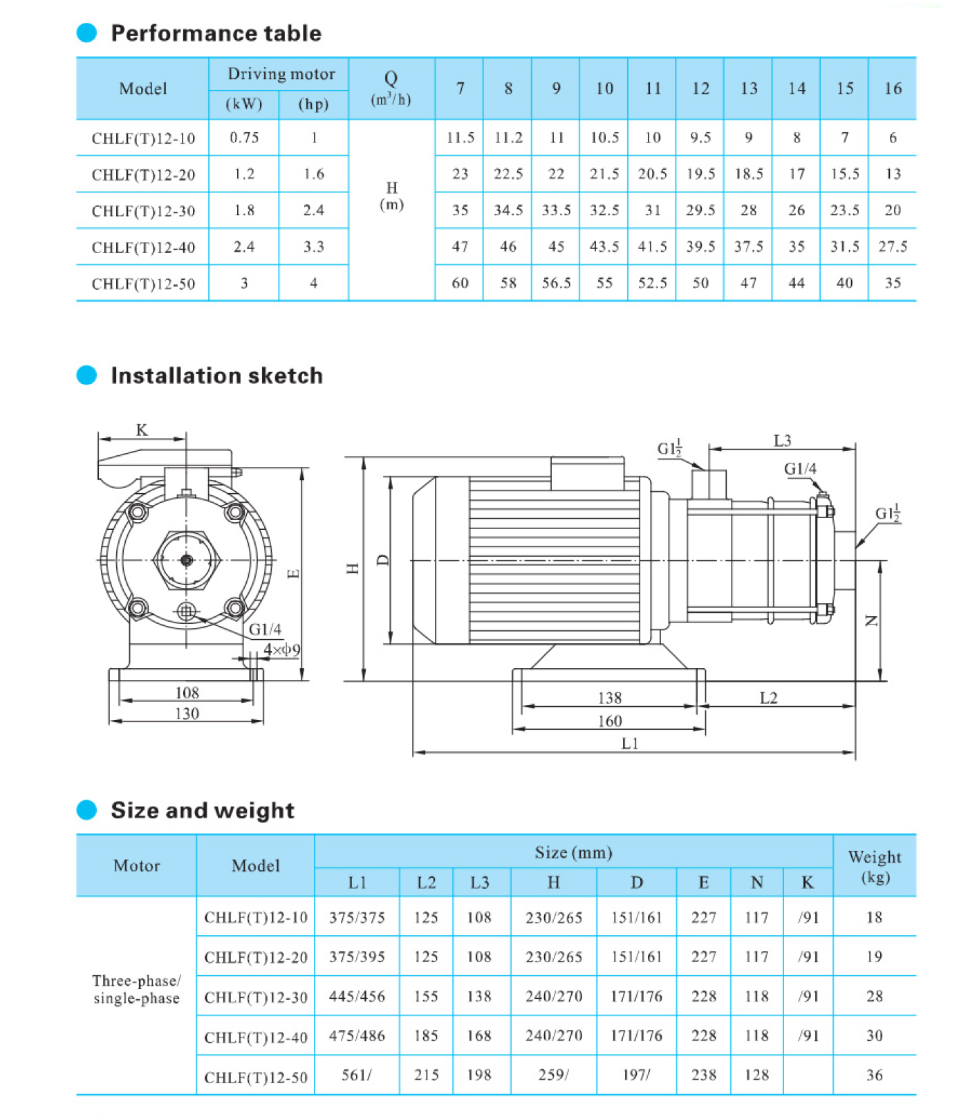 پمپ گریز از مرکز چند مرحله ای از جنس استنلس استیل افقی سری CHLF با موتور شفت افقی افقی، مکش محوری و تخلیه شعاعی ارائه می شود.