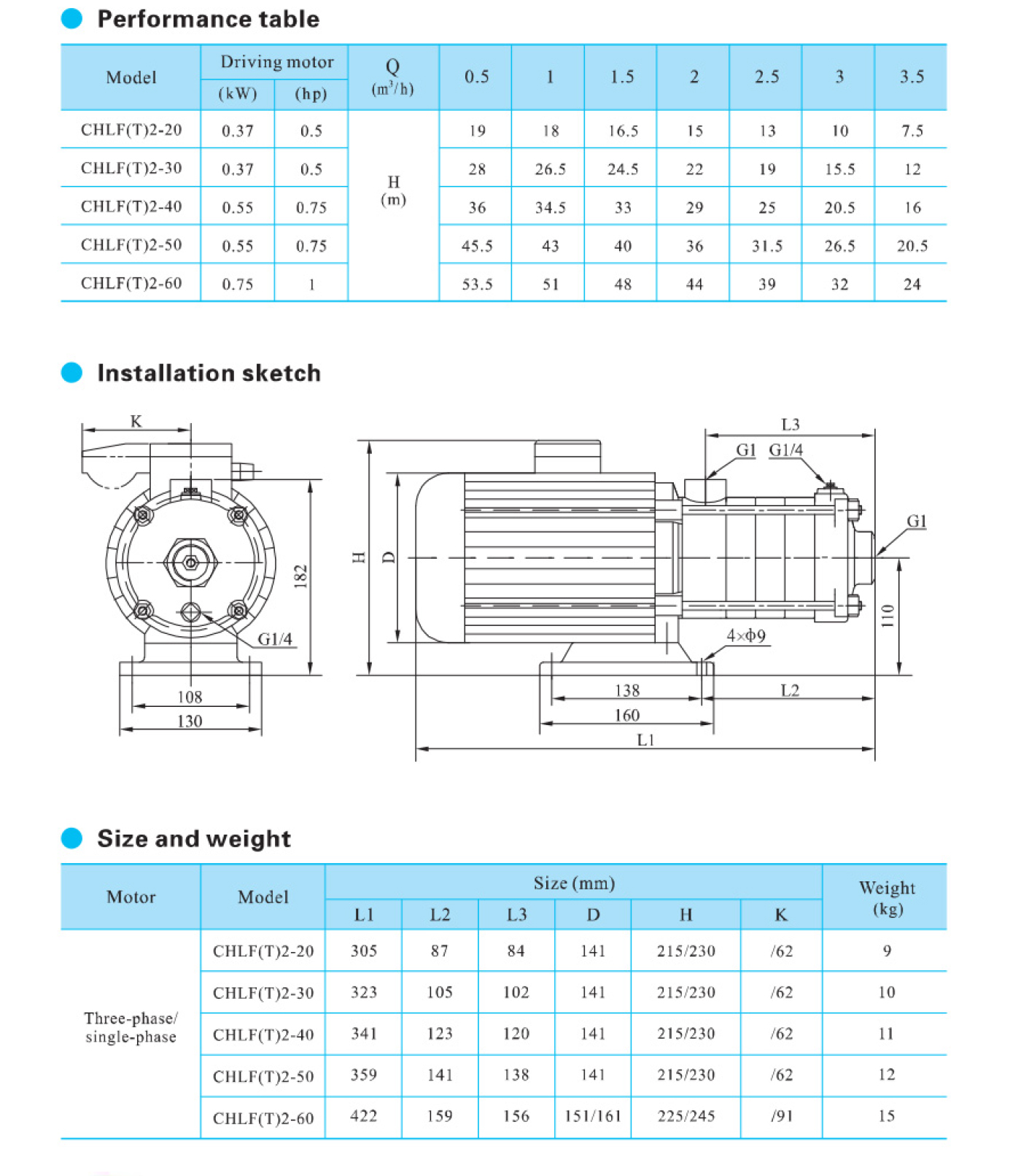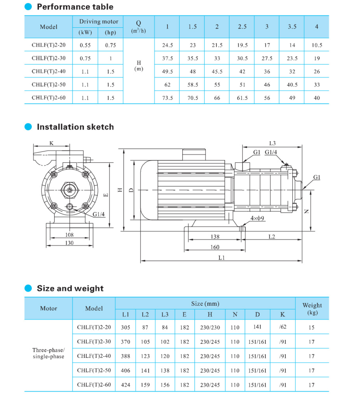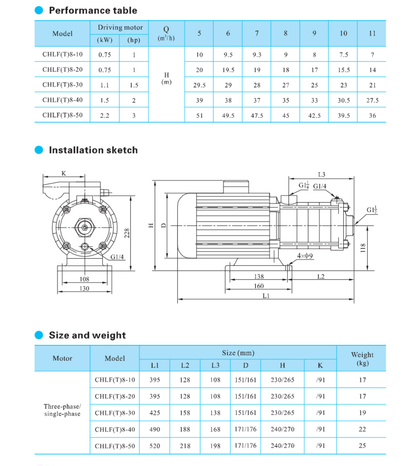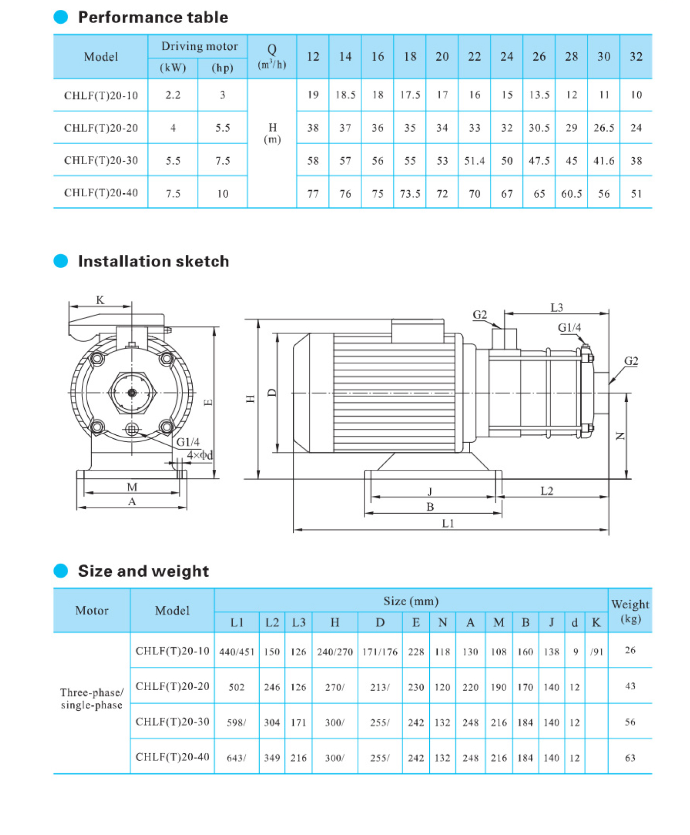 پمپ گریز از مرکز چند مرحله ای از جنس استنلس استیل افقی سری CHLF با موتور شفت افقی افقی، مکش محوری و تخلیه شعاعی ارائه می شود.